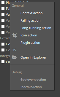 Attach any functionality to a plug-in and tailor it to a particular state; like an action only available via a failed validator, or a successful extraction, or just all-round functionality associated with a particular plug-in.